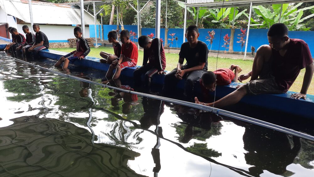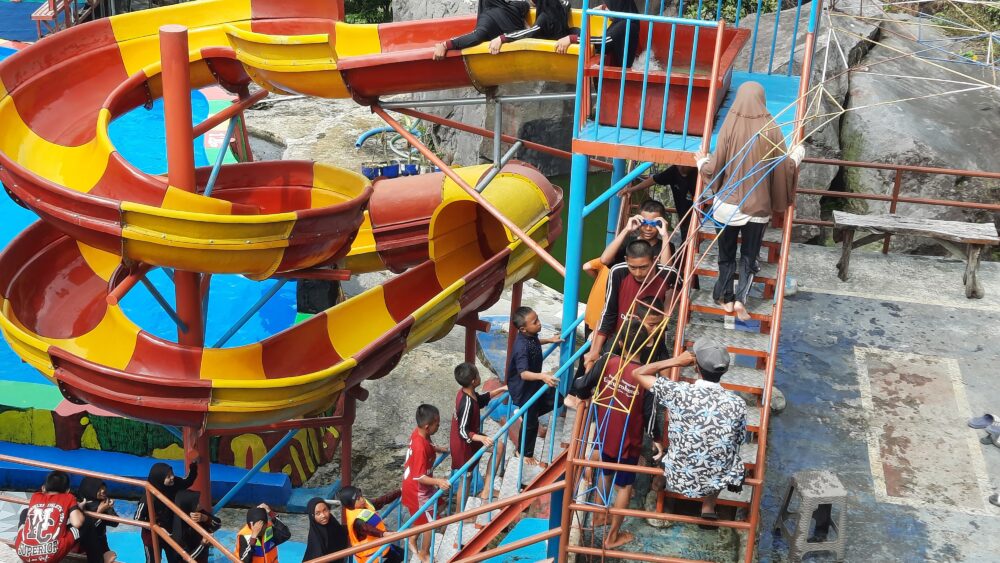 Para santri berenang dan main air dengan gembira. Selepas itu, para santri pria melanjutkan kegiatan dengan sholat Jumat berjama’ah di masjid di samping lokasi Taman Batu Hanjuang. Sebelum kembali ke pondok, para santri menyempatkan diri untuk foto bersama dengan para asatidz, asatidzah serta pengasuh Ponpes Darurrohmah Cirebon, KH. Warso Winata, Lc. MA.